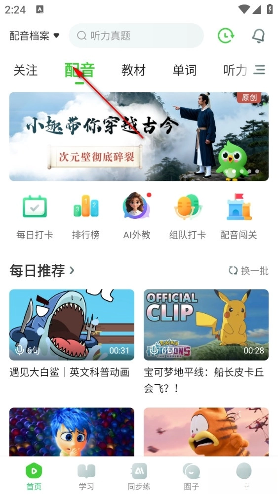 智能纠音,配音报告,一键解读,定位弱点,提高发音;