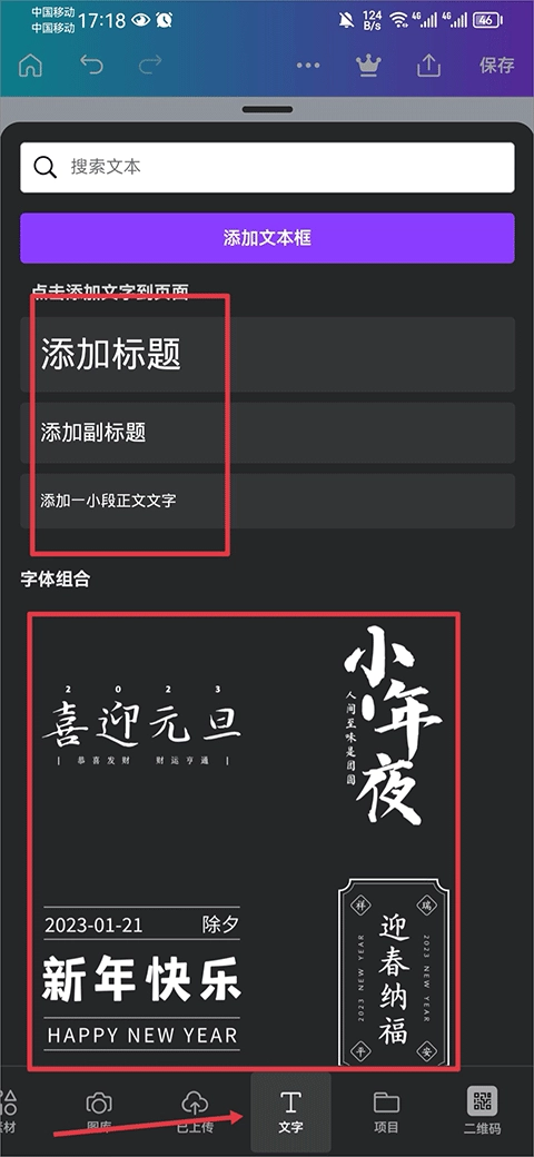 2、打开后在文字界面中选择并点击文字。