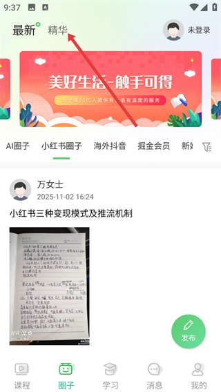 进入圈子板块后,点击【精华】标签,就能浏览到精选出来的优质帖子内容。