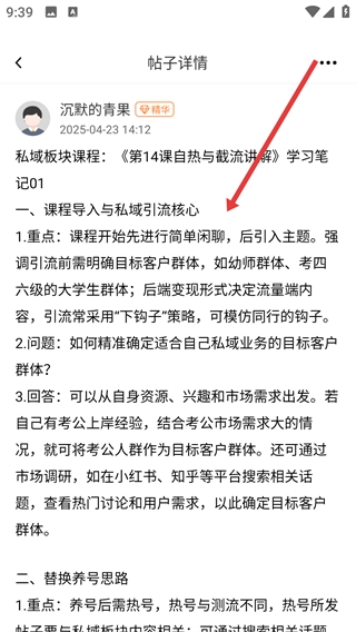 进入帖子详情页面后,就能查看完备的学习笔记之类的内容,知晓具体的知识要点。