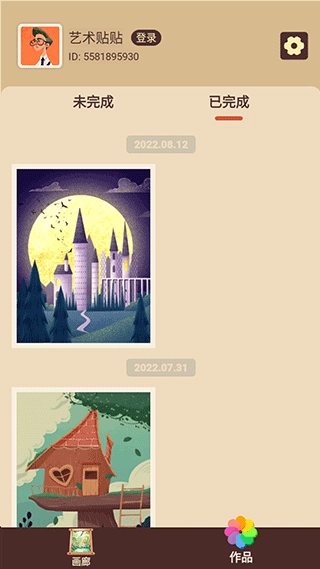 在这个专属于你的艺术空间中,你能够依据艺术图稿所提供的色彩贴片来开展拼图活动。