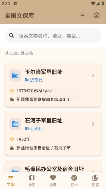 搜索与筛选功能操作便捷,地图定位清晰直观,助力用户迅速找到并深入了解目标文物。