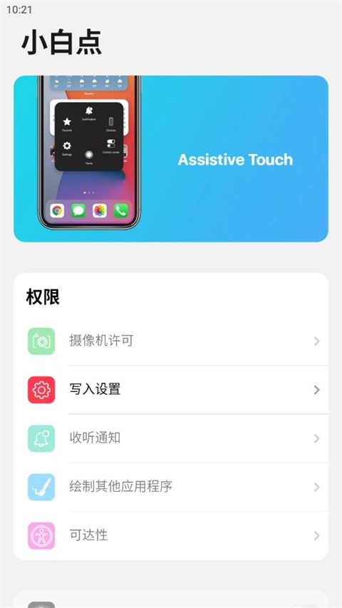 比如点击小白点功能,将所需的全新全部打开。