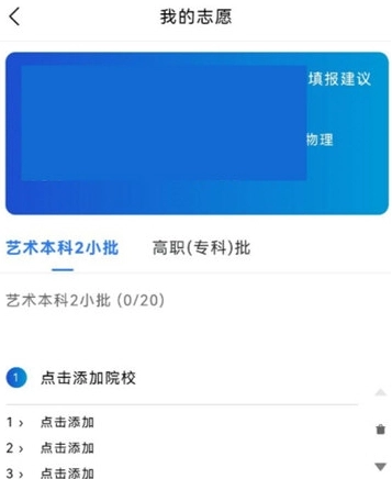 打开艺考志愿填报,点击首页右上角修改图标