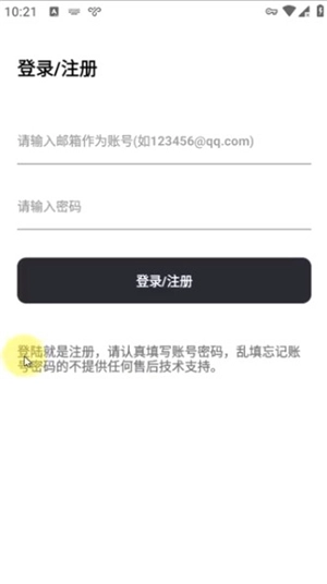 小伙伴们填写好邮箱与密码,点击登录/注册即可。