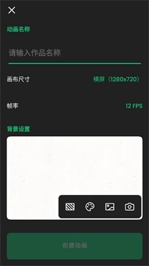 2、选择画布尺寸和帧数后点击创建动画;