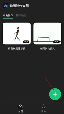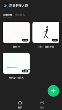1、打开App主页后,既可以选用已有的素材,也能点击绿色的+号按钮来自行创建内容;
