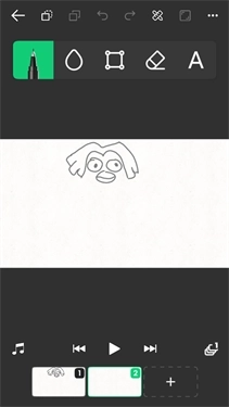 3、接下来就可以着手创作了,先在一块画布上绘制出你想要的样式,然后点击下方再创建一块画布并画出不同的样式,最后点击下方的播放按钮就能实现动画效果了。