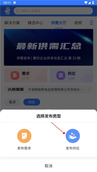 3、选择发布类型,点击发布供应;