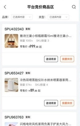 新竞价系统:商家不用自己填写商品信息,能直接挑选平台上的商品,一键就能参与竞价。