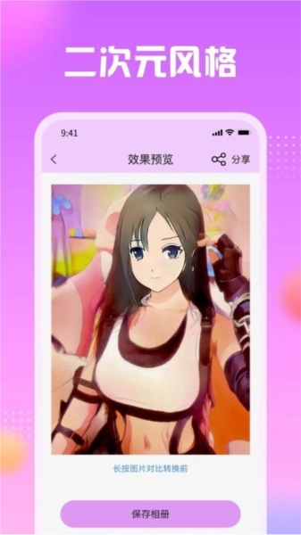 1、只需一键操作,就能让自己变成漫画风格的形象,还能直接分享到朋友圈,和朋友们一同欣赏。