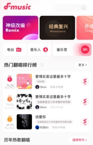 音乐爱好者推荐的随身畅听平台,是翻唱达人的汇聚地,涵盖复古风、流行、摇滚、英文歌、日韩歌曲等多种风格。