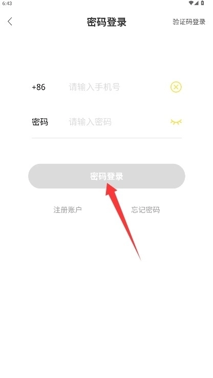 2、返回登录界面输入手机号与密码,点击登录按钮进入应用主功能操作界面。