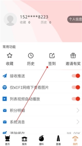 2、然后点击此处的签到