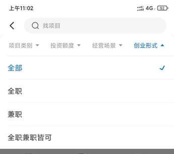 3、设有项目类别、投资额度、经营场景、创业形式四大模块