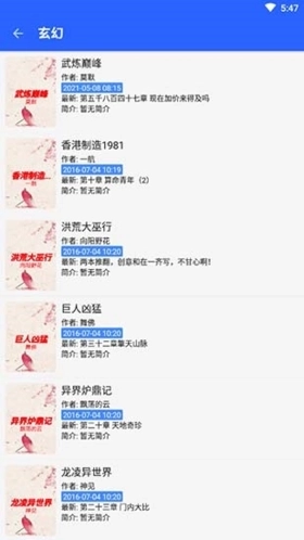 5、可浏览小说标题和对应的作者和小说的简介内容;