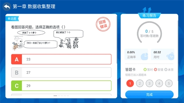 4、随后在习题练习环节完成相应数量的题目后,点击下一题;