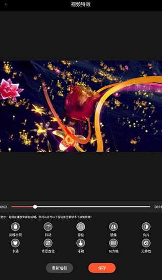 4、挑选所需功能,进入特效编辑界面,选定后点击保存就可以了。
