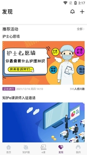 2、可借助发现搜索功能,查找自己想要了解的相关护理资讯与护理知识信息内容。