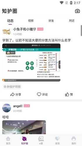 4、与同行业好友进行交流互动,切换至知护圈后,就能查看最新动态并和这些好友展开互动;