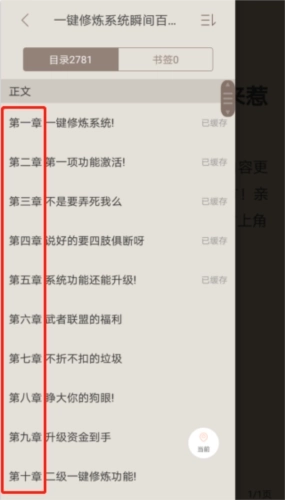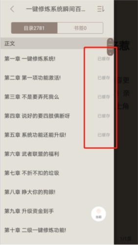 7、章节后方若显示“已缓存”的提示,意味着该章节已完成下载,即便在无网络环境下,用户也能正常阅读。