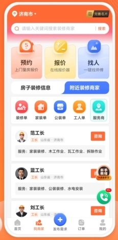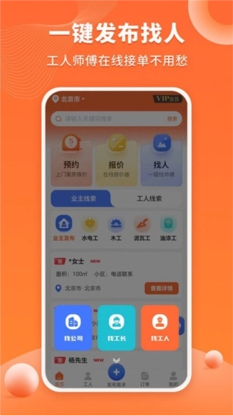 业主可在线一键发布找人线索,便捷找到所需工人。