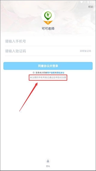1、首先我们打开软件后,能看到登录按钮下方有一行小字,内容是未注册的手机号验证通过后会自动完成注册,所以我们直接用验证码方式登录就可以了。
