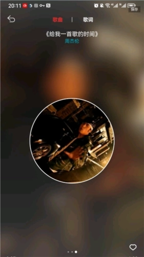 3、歌词界面写真轮播,支持保存写真背景图。