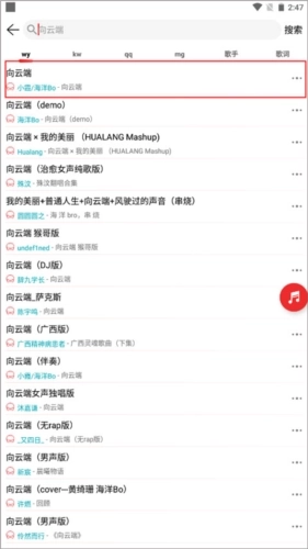 2、搜索出关键词后,你会看到很多的音频资源,点击其中一个进入播放界面。