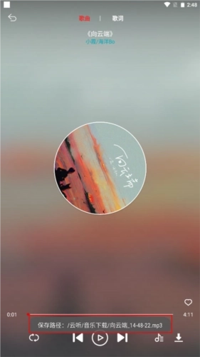 3、在播放界面中你可以查看歌词,也可以收藏或音乐。