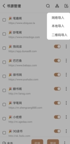 2、在全网搜书页面,点击右上角的“导入”图标按钮;