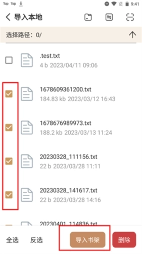 3、接下来在本地挑选需要导入的文档,最后点击“导入书架”,如此我们就能把在网上的书籍内容导入到平台上了。