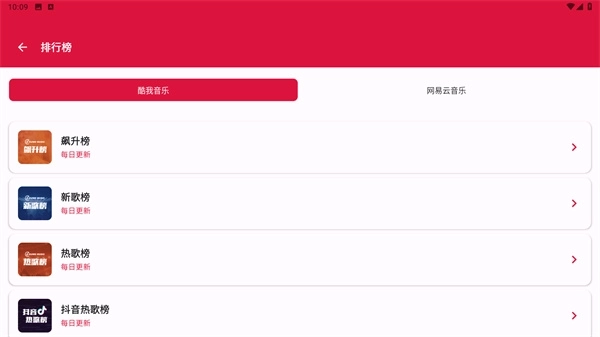 2、接着点击更多可以查看酷我音乐以及网易云音乐的各种排行榜单;