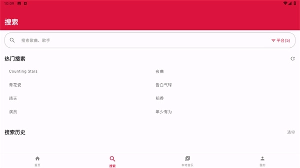 3、然后点击下方搜索来找到自己喜欢的歌手或者歌曲;