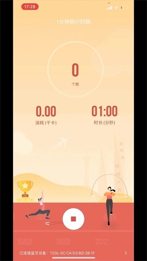 3、进入主页后点击中间的开始按钮就能记录跳绳的各个数据。