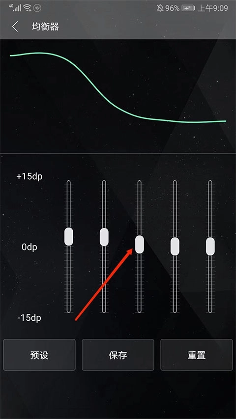 4、进入均衡器界面后,拖动界面中的“椭圆形”按钮即可完成调节操作。
