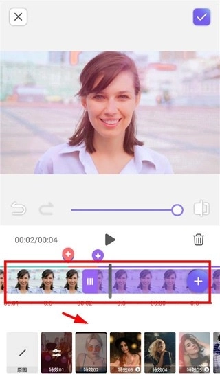 3、按照小编演示的操作,挑选你喜欢的特效模板,通过自由拖动进度条就能使用啦。