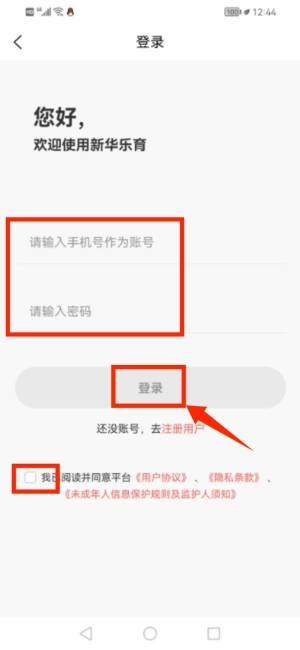 2、输入手机号及密码完成登录操作。