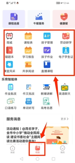3、通过校园页面使用商城等功能服务。