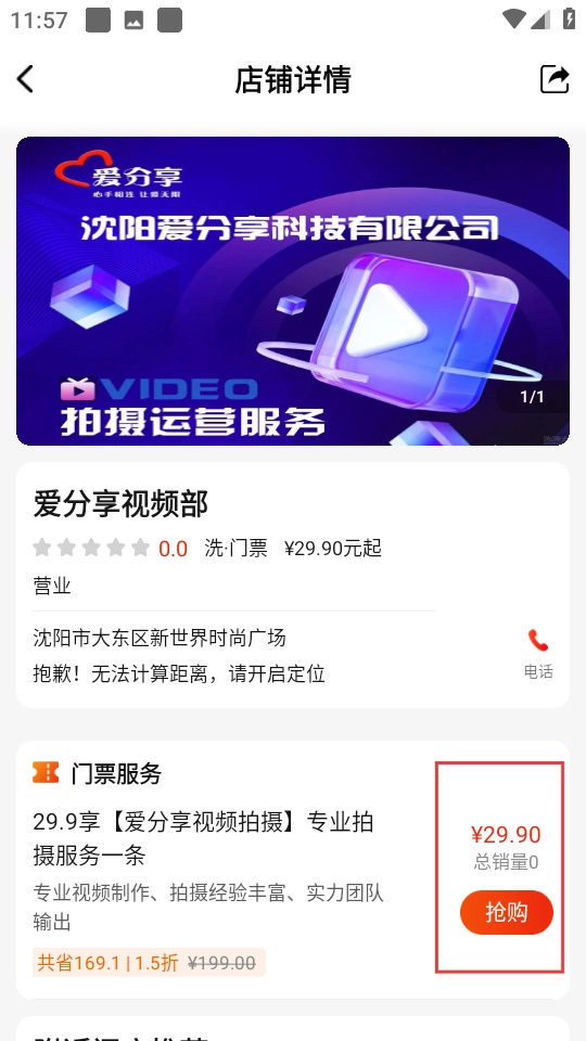 在洗门票页面,选择想要查看的商家。