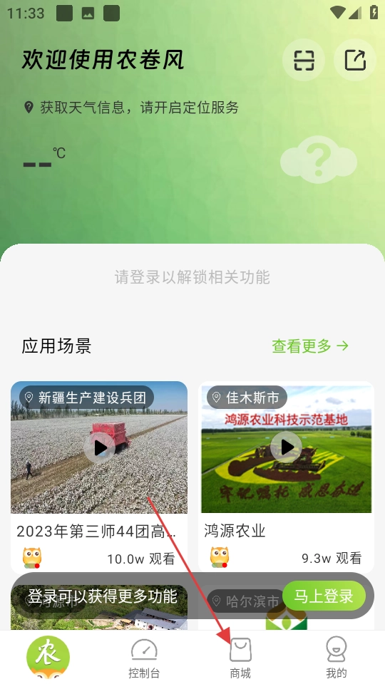 打开农卷风,点击底部商城进入商城页面。