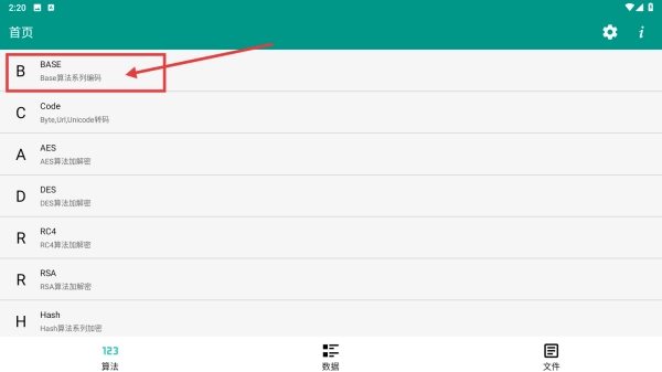 启动编码工具类应用后,在功能选项中找到BASE64相关的编码系列选项并点击,即可进入对应的BASE编码操作界面。