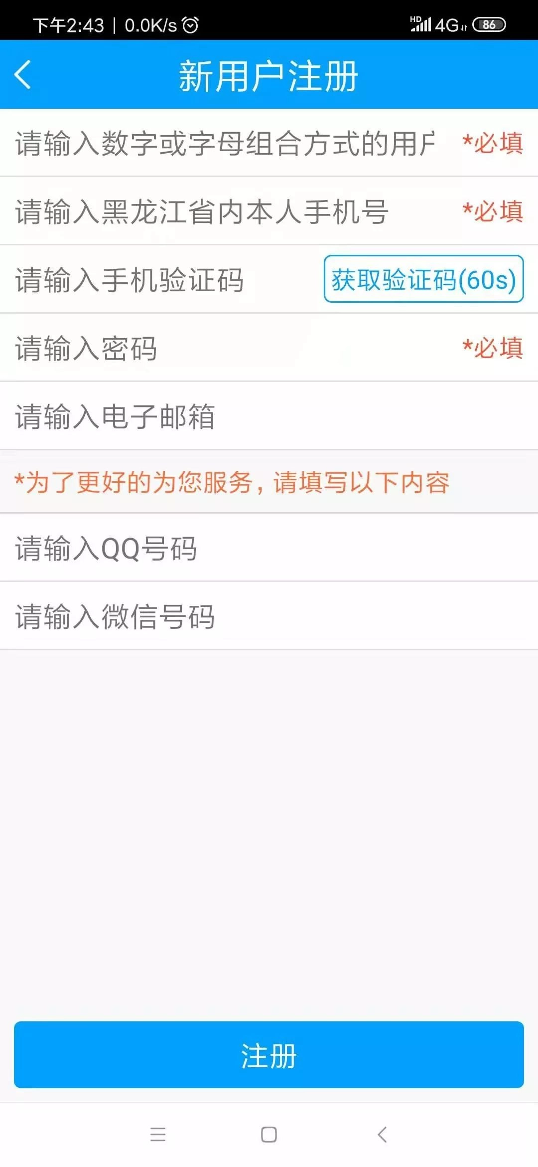 打开新用户注册信息填写页面,把相关内容填好后,点击注册按钮就能完成新账号的创建流程。