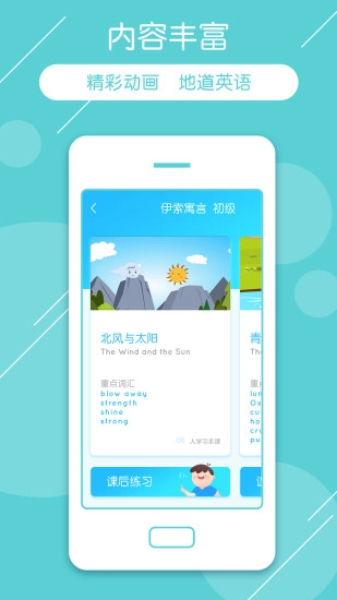 伊索寓言的精美动画搭配地道美式发音,通过反复跟读对话、借助讯飞语音精准打分,能轻松提升英语听力与口语发音能力。