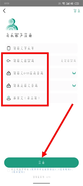 输入验证码,设置6至18位的密码,再确认密码,随后点击注册按钮,即可完成整个操作流程。
