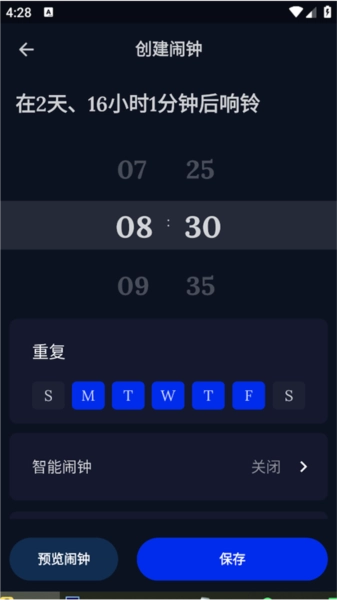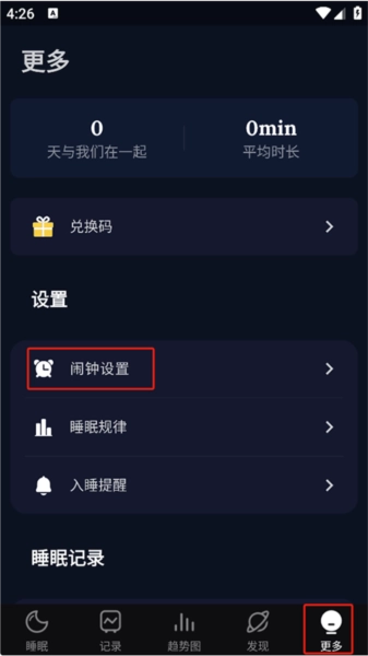 打开睡眠监测应用 > 更多选项 > 闹钟设置