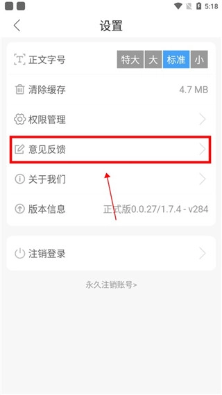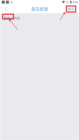 打开意见反馈页面,填写反馈信息后,点击【提交】按钮。