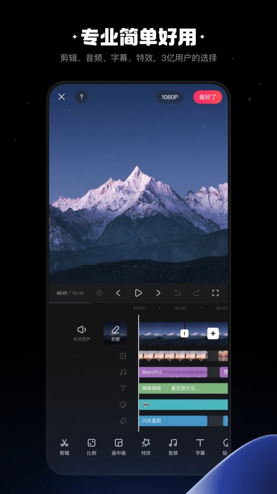 轻松实现视频剪切,快镜头与慢镜头可自由选择,让你轻松打造出专业感十足的大制作!