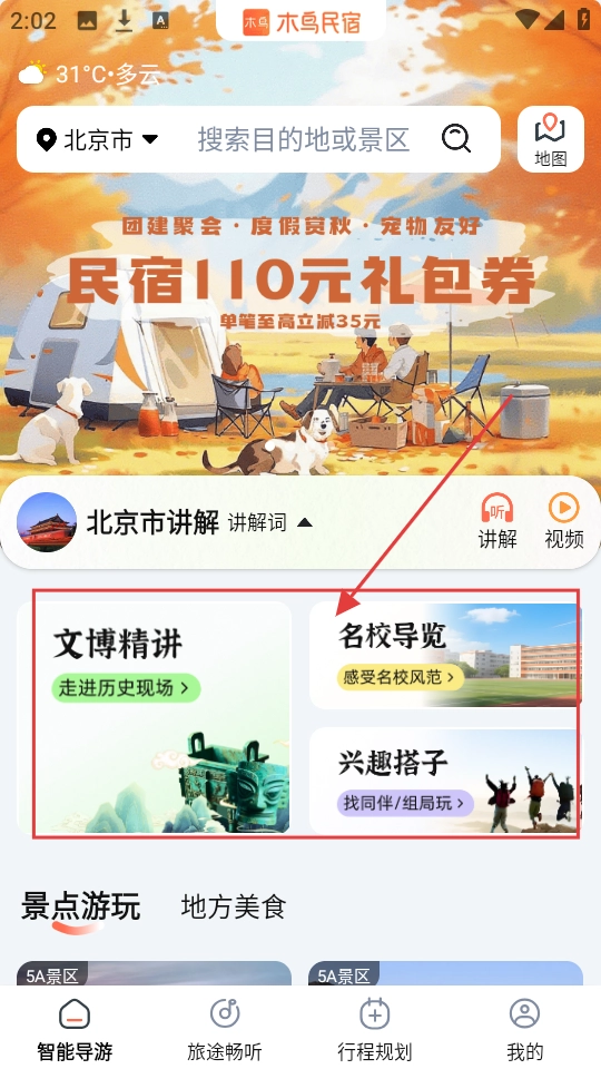 在首页可以选择【文博精讲】【名校导览】【兴趣搭子】等板块,从而进入相应的主题页面。