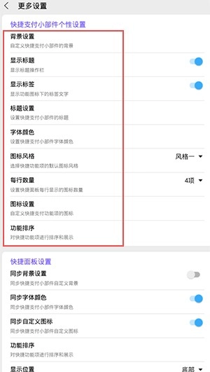 在快捷支付小部件的设置界面中,你能够对图标隐藏、触感反馈、支付宝口令以及主题风格等选项进行设置。